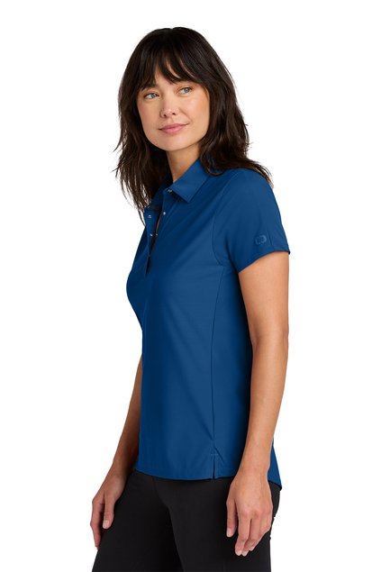 OGIO heat transfer label for tag-free comfort | Self-fabric collar | OGIO neck tape | 4-snap placket | Longer placket length | Dyed-to-match O OGIO icon snaps (White has black snaps) | Modified raglan sleeves | Tonal raised O OGIO icon heat transfer on left sleeve (White has black logo) | Side vents | Slightly curved drop tail hem