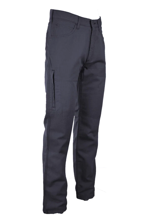 Mid-rise | Non-conductive button closure | Brass zipper with Nomex® tapet | Sewn with Nomex® thread | Relaxed fit through seat and thighs | Traditional 5-pocket style front & back pockets | Utility pocket on the left leg | Low profile, inset side entry slit pocket with zip closure on the right leg | Triple-needle stitching on outseams and inseam